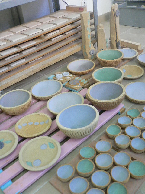 Estou contente com o meu dia de hoje! Vidrei todas as taças e tacinhas e ainda arrisquei vidrar também os solitários maiores… Fico nervosa com esta questão dos vidrados, penso sempre que as peças vão sair mal… Mas amanhã forno com elas! E pronto! Acho que já tenho um conjunto simpático para levar para a Feira Medieval de Elvas… se eu for, claro! A dúvida continua.