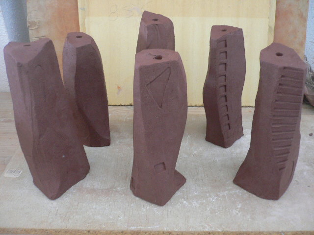 Hoje fui comprar barro. Foram só dois pacotinhos… Fiz peças novas. Tem estado calor e talvez elas sequem. Domingo, no máximo, têm de ser enfornadas. Como não tenho muito tempo para experimentar ideias novas, continuo na mesma linha das que já tenho, mas com uma decoração diferente. Azul e branca, como na época áurea da azulejaria portuguesa do séc. XVIII.