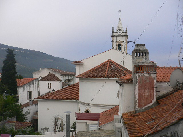 Desta vez fiquei numa residencial na Lousã, simpática; num quarto simpático no segundo andar. Não fosse a vista para as traseiras e nunca veria deste ângulo a igreja onde estamos a trabalhar… De tardoz para tardoz.