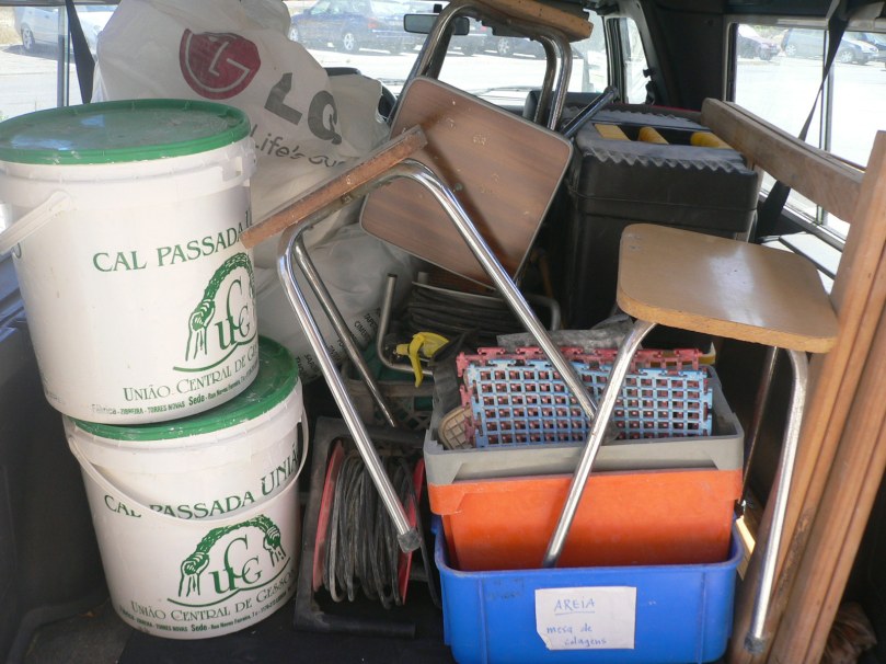 Começou a intervenção de conservação e restauro dos azulejos do Pátio dos Canhões, no Museu Militar, em Lisboa. Há três dias que não faço outra coisa senão ir comprar materiais – carregar o carro; ir à oficina – carregar o carro; ir ao Museu militar – descarregar o carro; ir comprar mais materiais – carregar o carro; voltar ao Museu Militar – descarregar o carro; voltar à oficina. Se tudo correr bem, daqui a cinco meses terei de fazer tudo de novo, mas em sentido inverso; ou seja, ir ao Museu Militar – carregar o carro; ir à oficina – descarregar o carro; voltar ao Museu Militar…