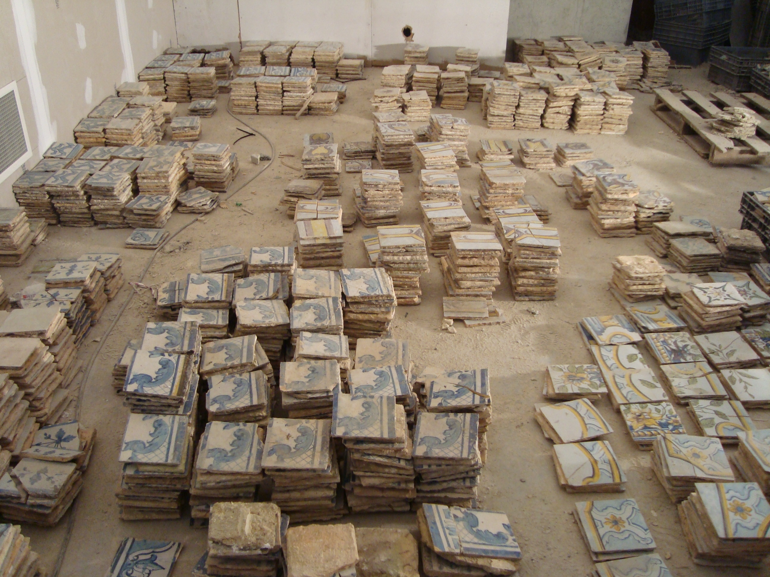 Ao fim de cinco dias de trabalho intensivo conseguimos separar e inventariar cerca de 3817 azulejos – fora os oito caixotes com fragmentos da mesma tipologia – separados por 13 tipos de padronagem; 9 tipos de cercaduras; 12 tipos de rodapés; 2 tons de azulejos brancos e ainda 3 conjuntos de azulejos da mesma tipologia possível de serem analisados numa outra ocasião.