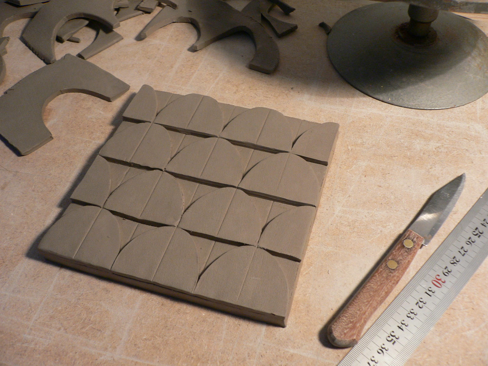 Comecei hoje o protótipo de um azulejo de padrão, o primeiro de vários que quero fazer e que, há falta de melhor, para já; estão arquivados numa pasta que se chama «produção 2013». Tenho muitas ideias, ainda bastante desorganizadas, mas, como sempre, quando começo a mexer com os materiais, elas vão-se encaixando e encarrilando ordeiramente.