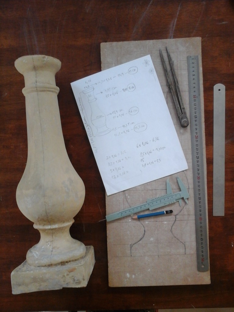 Hoje comecei a modelar um protótipo de um balaústre em terracota – tive uma encomenda para executar doze réplicas, para colmatarem as falhas existentes numa balaustrada de um pequeno jardim no centro de Lisboa.