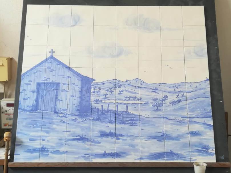 Foi toda uma linguagem nova, muito diferente da que estou habituada e a sua aprendizagem foi principalmente o que ganhei com este trabalho. Tenho pena que me tenham encomendado azulejos industriais finos, de 15×15 – os mais feios de todos, aqueles que eu não uso nunca! – mas enfim, acho que agora consigo ponderar voltar a pintar alguns destes desenhos em azulejos manuais, feitos aqui na oficina, muito mais bonitos. E só porque sim.