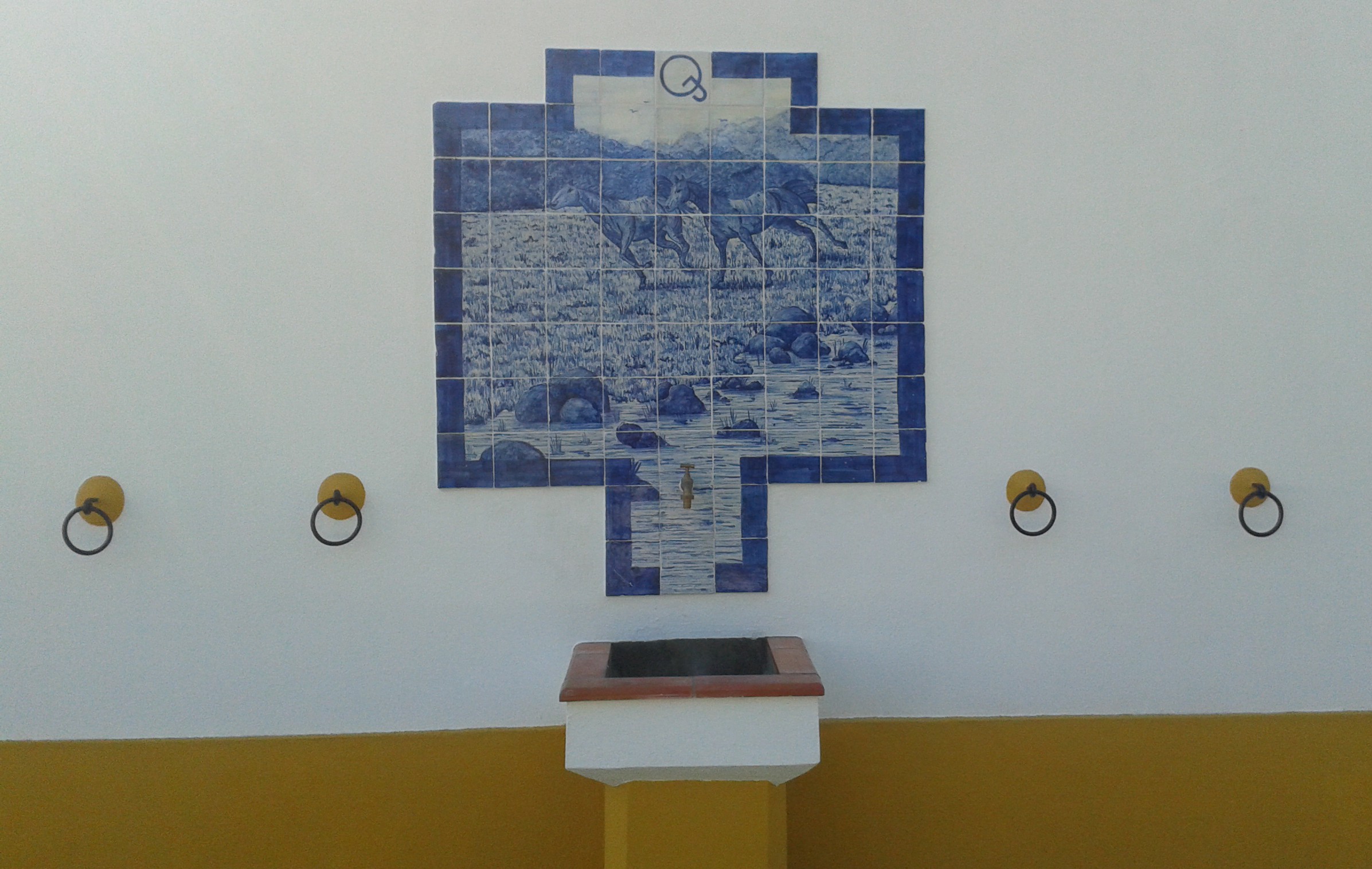 Tenho andado sem mãos a medir nestes últimos dias: para além das réplicas dos azulejos de padronagem do séc XVII que tenho estado a pintar para Monserrate, pediram-me também, na mesma encomenda, 60 réplicas de azulejos de estampilha para colmatar as lacunas existentes na sala de jantar do Palácio da Pena.