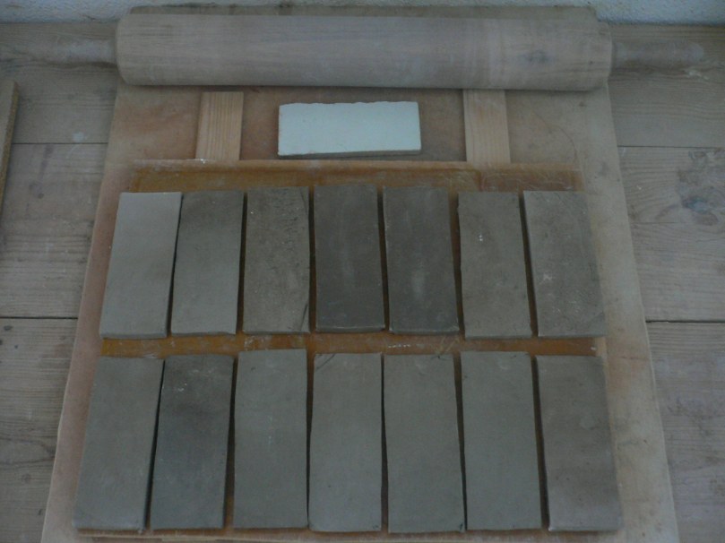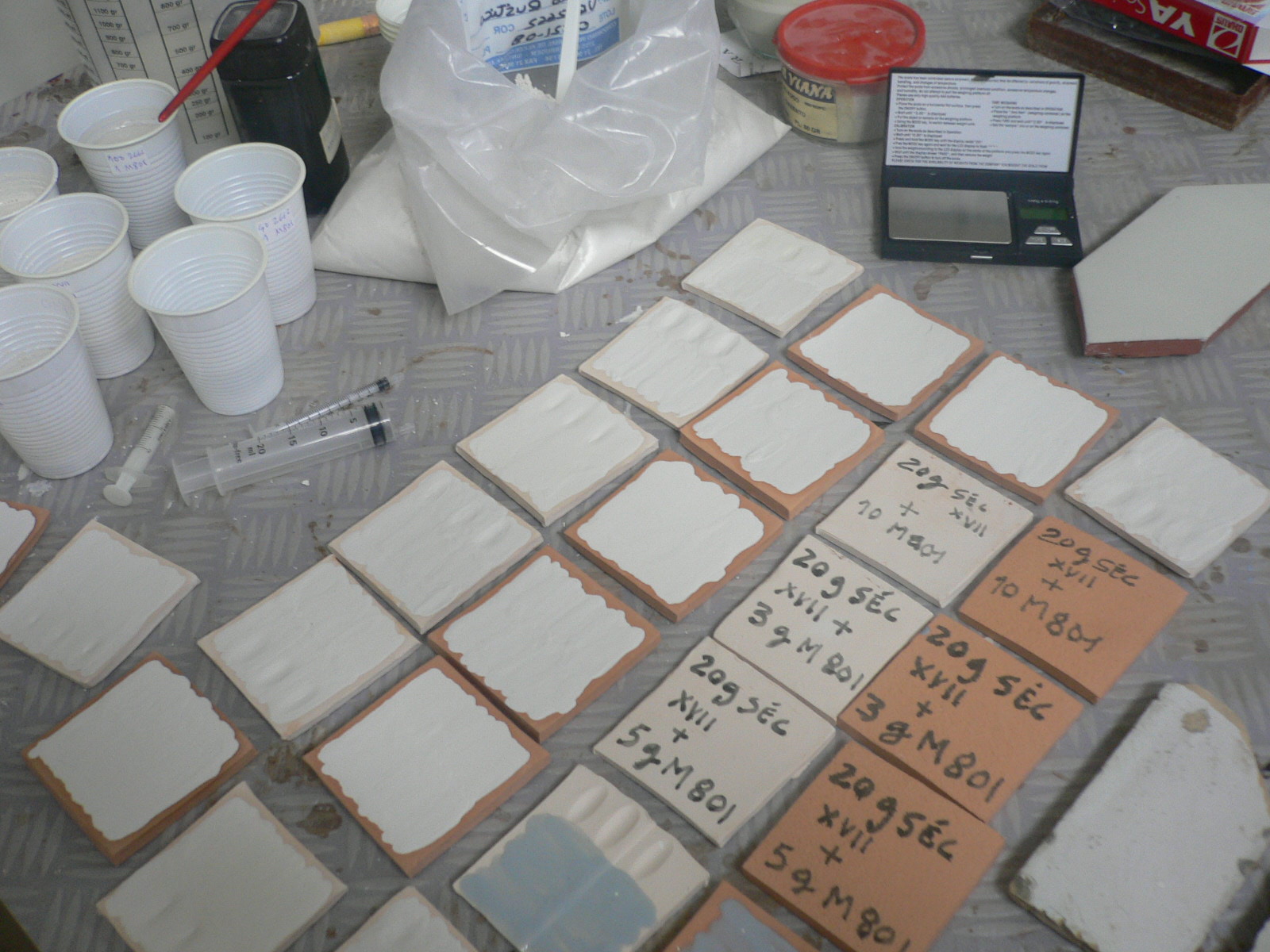 O tempo tem estado húmido e é difícil secar as peças aqui na oficina, mas ainda dentro do prazo previsto, consegui enchacotar estas peças que fiz há cerca de um mês, para um painel do tipo alicatado, igual ao revestimento azulejar da Sala Árabe do Palácio Nacional de Sintra – que já tinha feito este ano e que agora me foi encomendado outra vez.