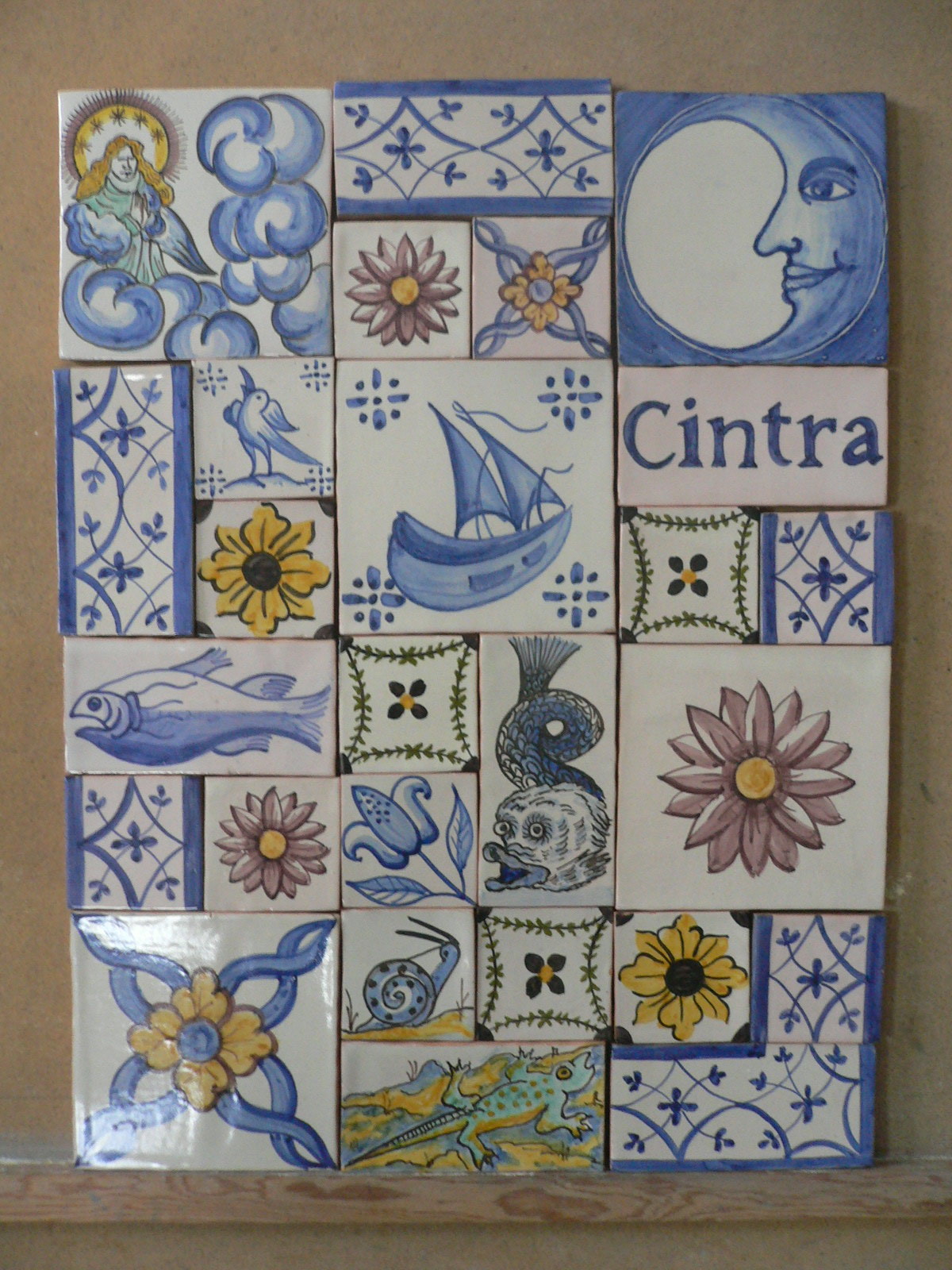 Estou satisfeita com as chacotas que fiz desta réplica de um dos inúmeros azulejos em relevo executados pela extinta Fábrica de Massarelos, em meados do séc. XIX e que, por razões óbvias, podem ser encontrados a cobrir tantas fachadas de edifícios do Porto e do norte do país em geral.