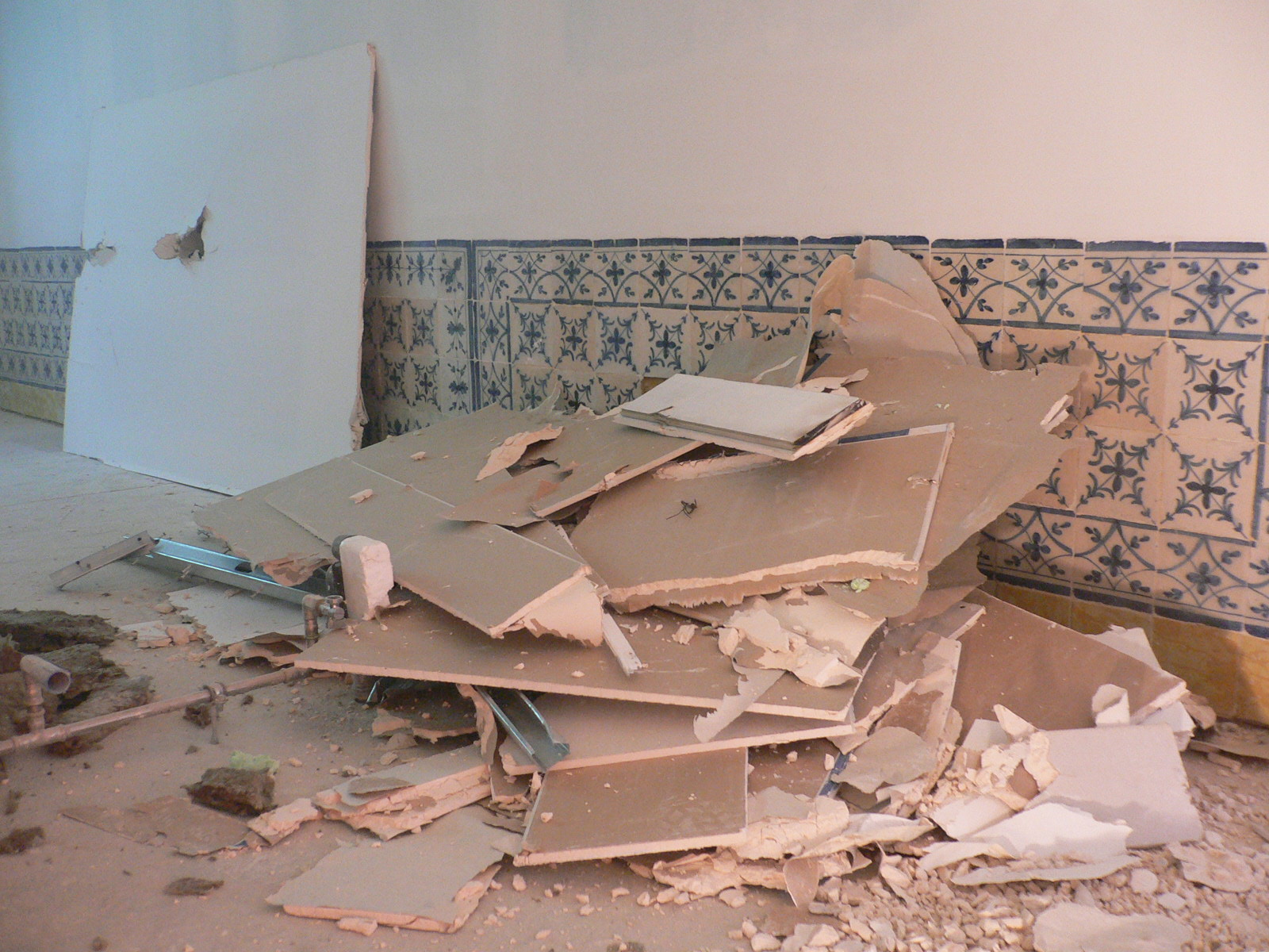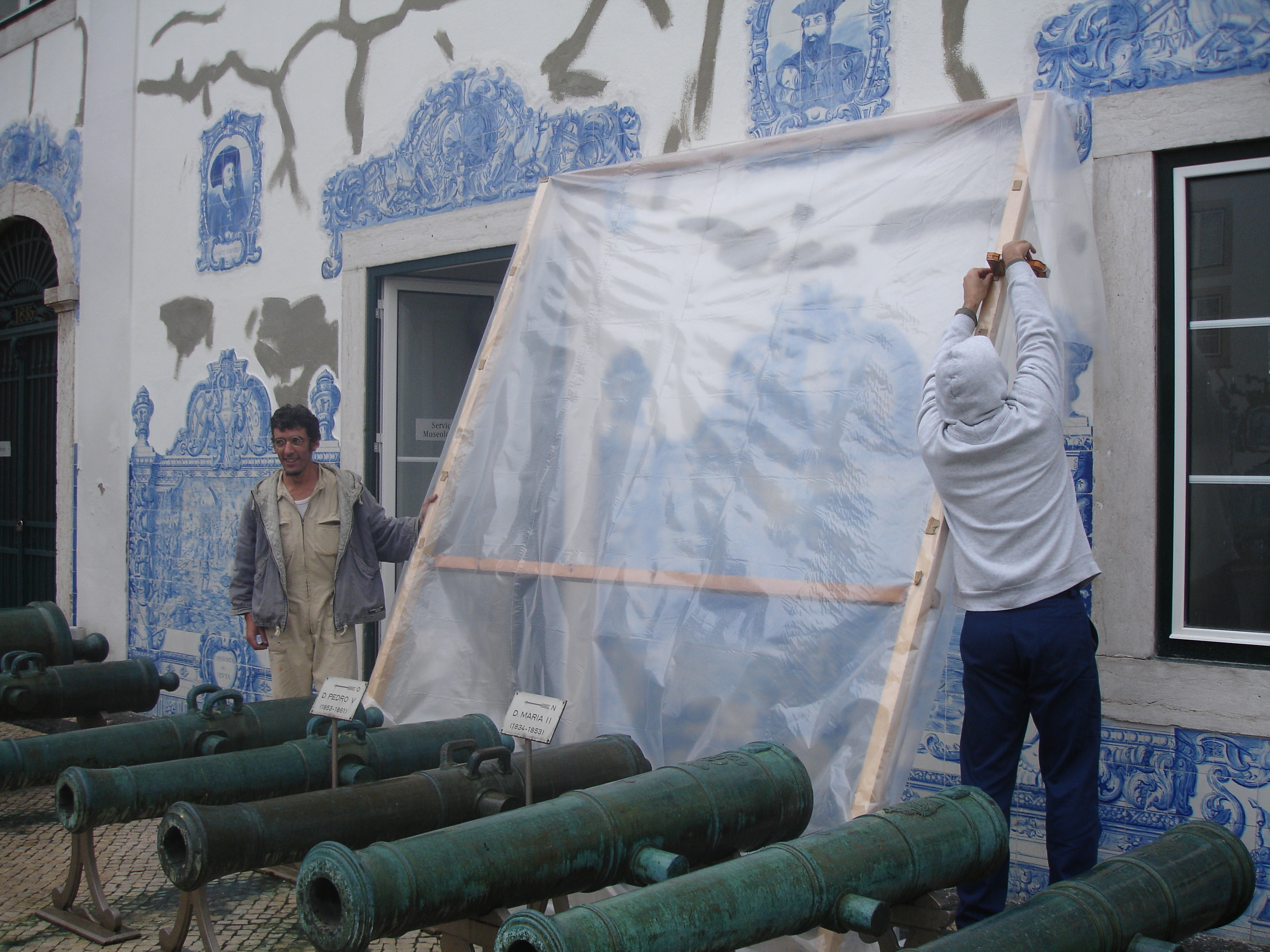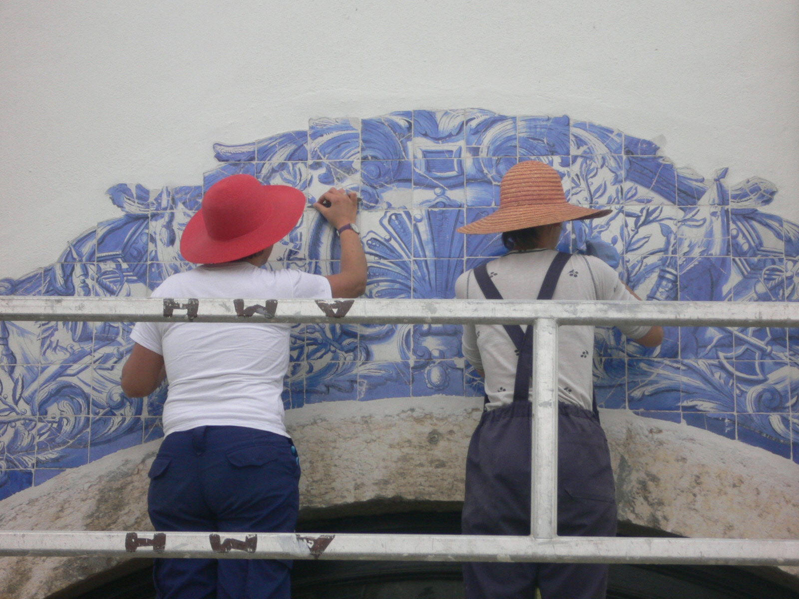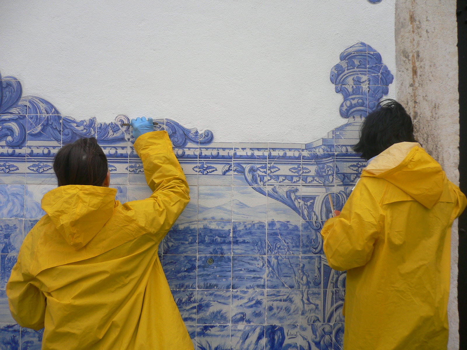 A semana passada, fui contactada para ir ver um trabalho num edifício em Lisboa, precisavam de alguém que fizesse uma pequena intervenção de restauro nos azulejos. Fui lá ver o que era – afinal os azulejos estão em óptimo estado de conservação, apenas umas falhitas de vidrado a precisarem de ser integradas e, curiosamente, uma série de balaústres no telhado, a precisarem de limpeza, consolidações de vidrados, preenchimentos e integração cromática.