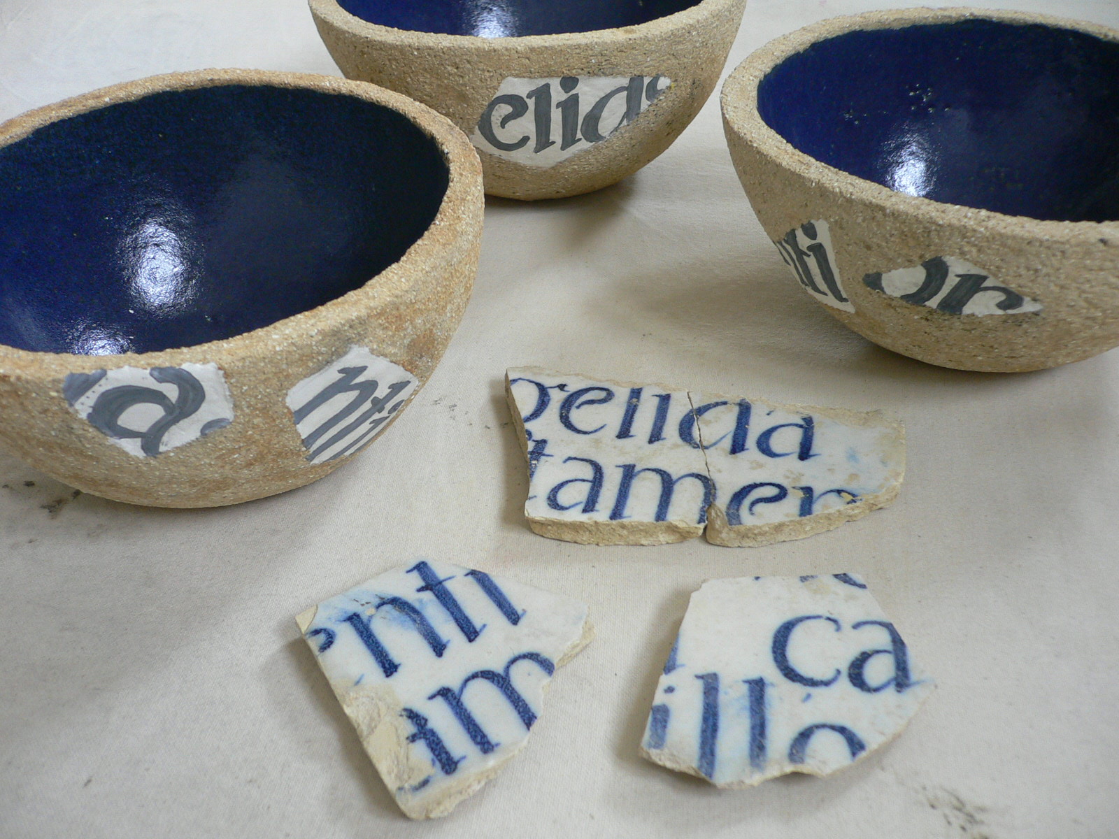 Tenho andado à luta para conseguir engendrar um vidrado branco para fazer cerca de 250 réplicas de azulejos do séc XVIII, que, por serem brancos, parecem tão simples, mas a verdade é que já criei não sei quantas receitas para não sei quantas experiências de cores e nada – alguns resultados até têm bastante piada, pois não têm mesmo nada a haver com o procurado e é sempre uma surpresa abrir o forno.