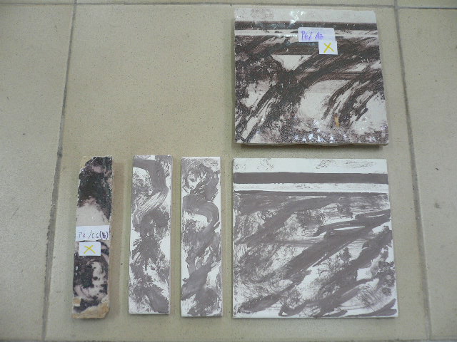 Enquanto deixo a minha equipa espalhada pelo 88, Museu Militar e Instituto de Medicina Tropical, estou agora de volta à oficina (que está caótica, por sinal…) para começar a fazer as réplicas para o 88. Há dois meses que ando a falar neste assunto, mas pronto; só agora é que finalmente se decidiram a mandar avançar com esta fase, como se se fizessem cerca de 130 azulejos – réplicas, ainda por cima – do dia para a noite: há que tirar todos os desenhos, comprar as chacotas adequadas, fazer experiências de vidrados e tintas, enfornar, desenfornar um dia depois, voltar a fazer ensaios… Enfim, «Isabel, dê prioridade a este assunto!» e lá vai ela, agora, à pressa, meter mãos-à-obra, quando se podia ter feito tudo muito mais tranquilamente…